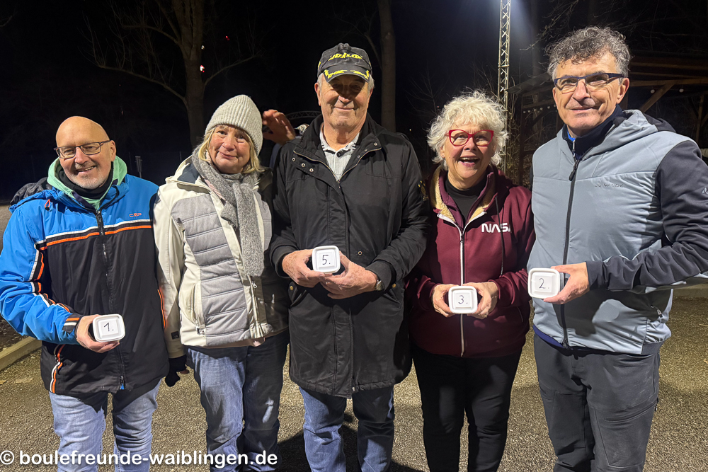 Sieger der zweiten Runde: Stefan, Marina, Sylvia, Bernd und Thomas